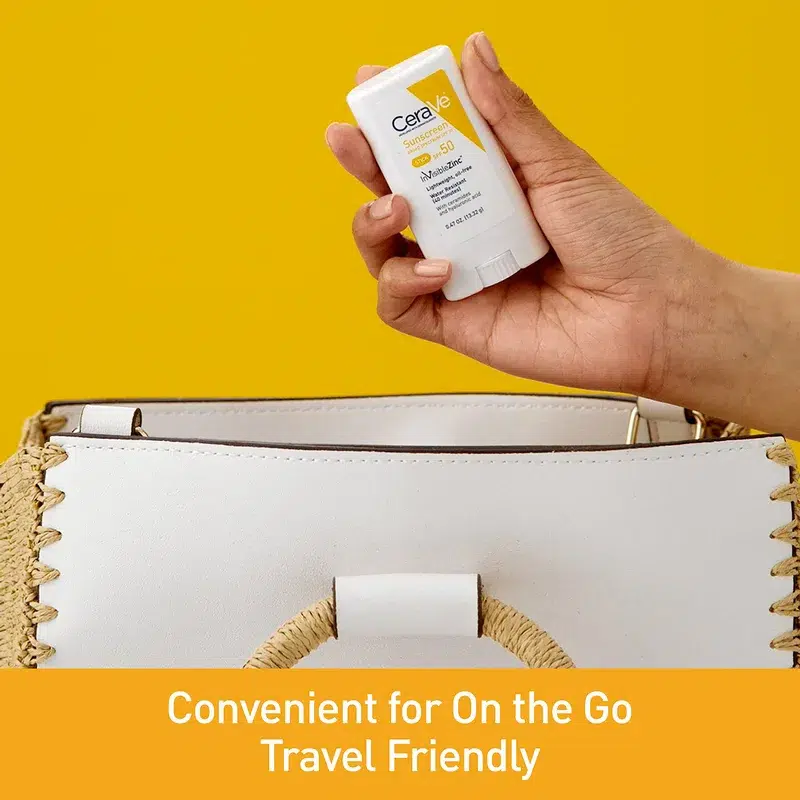 - به SPF محصول توجه کنید: ضد آفتاب استیکی سراوی با SPF 50 از پوست شما در برابر اشعههای UVA و UVB محافظت میکند.